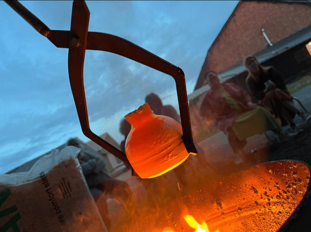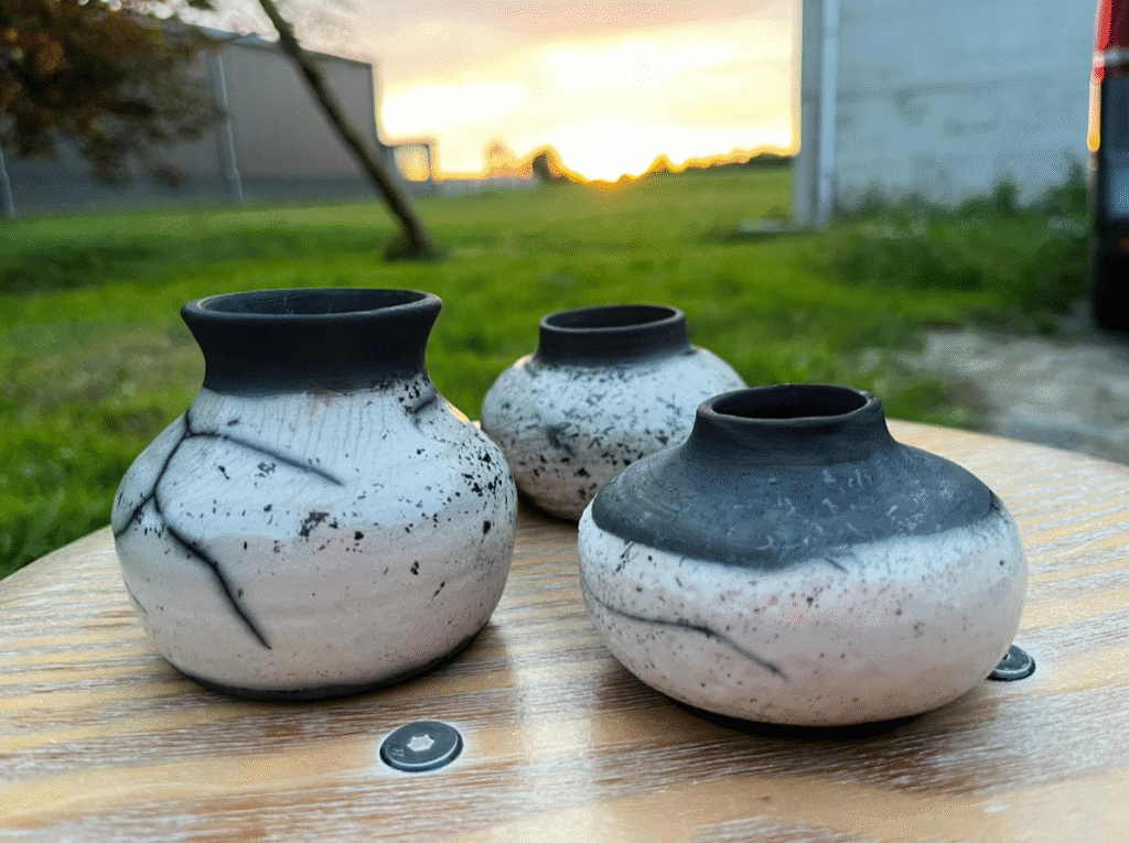Hoe: We stoken op 23 November 25 een biscuit gebakken stuk in de raku. Stukken kunnen ook gemaakt worden bij Atelier Steengoed of bij mij in open atelier of op 9 November 25